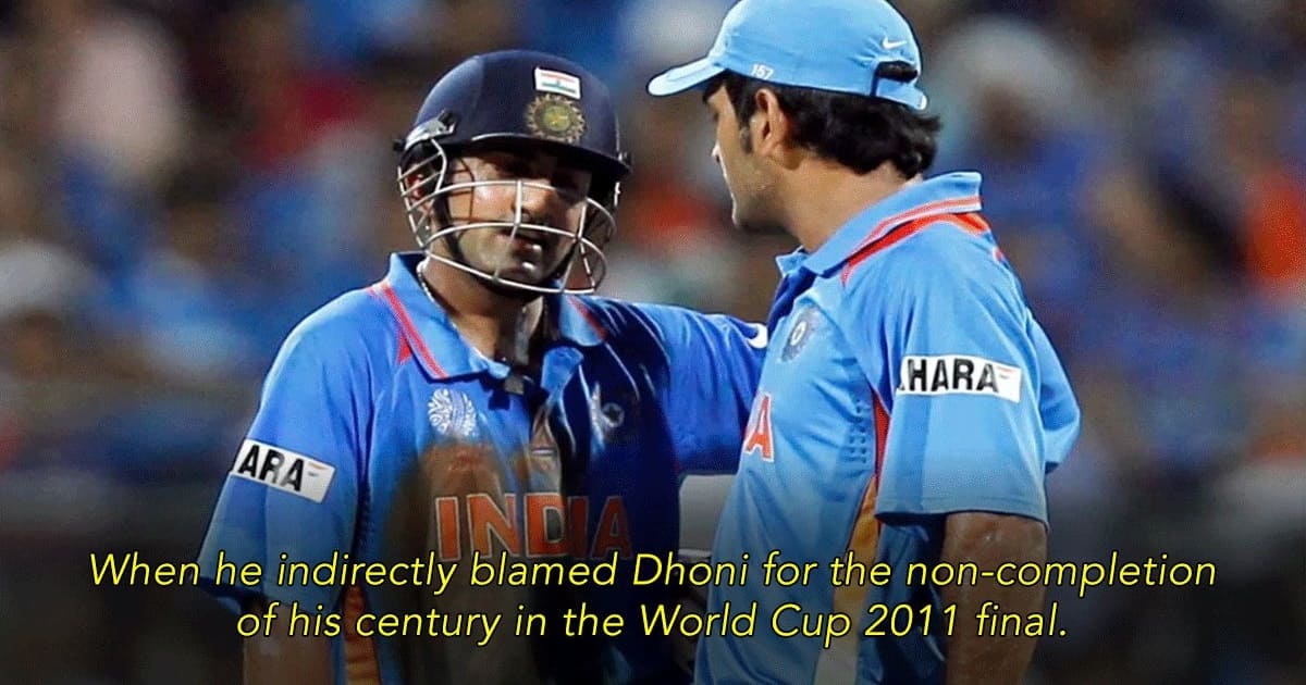 It is pretty evident that he was directly hinting at and blaming Dhoni for the non-completion of his century since he had scored the match-winning knock of 97. But Dhoni was the captain and he was doing nothing but motivating Gambhir. Taking such a dig at Dhoni was not a good look in many people’s eyes.